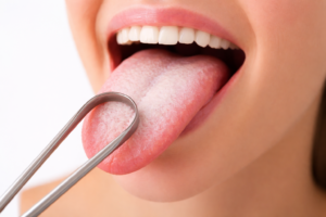 La lengua blanca candidiasis (candidiasis oral o “muguet”) ocurre cuando un hongo que puede vivir en la boca aumenta más de la cuenta. Suele verse como placas blanquecinas, a veces con enrojecimiento debajo, y puede molestar o sangrar al intentar retirarlas. Es más probable tras antibióticos, con inhaladores de corticoides, prótesis, defensas bajas o sequedad bucal.